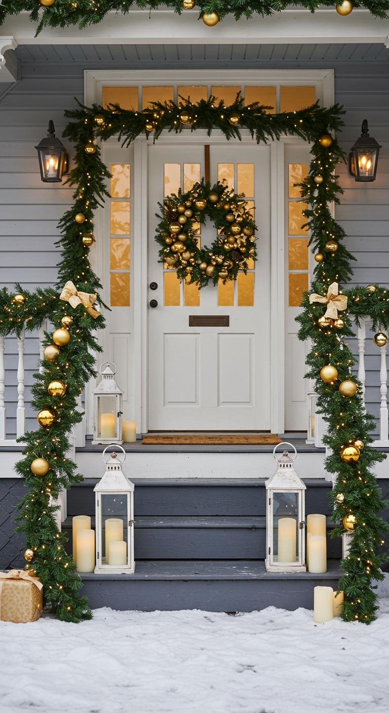 There’s something so classy about Christmas decor that walks the line between traditional and sophisticated. Think lush greenery draped along your railings and doorways, with garlands twinkling softly thanks to white lights woven right in. Top off the look with a classic wreath dressed up in gold accents—that simple touch really elevates the whole vibe. Rustic lanterns filled with flameless candles not only soften the glow but keep everything safe. And if you find a few faux pinecones or red bows at a thrift store, snag ’em! These small details combine to greet guests with a warm, stylish welcome you’ll adore.