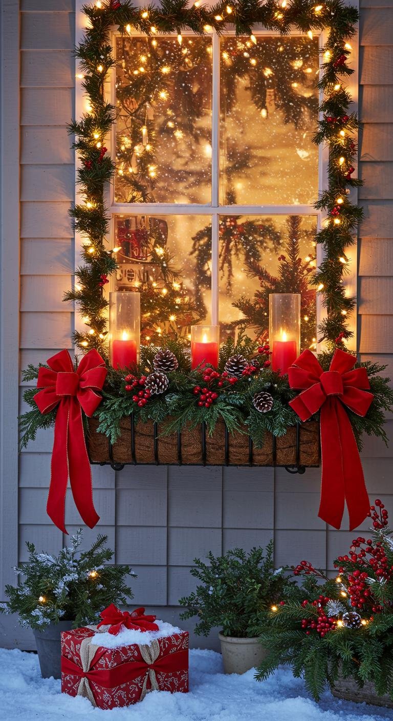 Window boxes are such a sweet way to add holiday cheer right at eye level. Filling these with fresh greenery like pine and holly creates that lush, seasonal feel instantly. Pair your greenery with red ribbons or bows to bring in classic pops of color that never go out of style. Flameless candles nestled inside add a gentle glow without any of the worry of real flames. For a little extra fun, tuck in tiny ornaments or pinecones—something to catch the eye and spark a smile. Plus, making these window boxes can easily become a weekend project that the whole family gets in on.