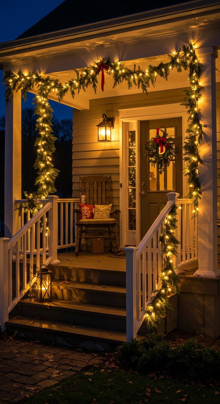 Twinkling string and fairy lights are the secret sauce for that magical Christmas porch glow. Wrap warm white lights around railings, windows, or overhead to make your space sparkle. If you’re feeling bold, add colored lights for a playful, festive twist. Mixing these lights with garlands and wreaths ties everything together nicely. You can even stuff big glass jars with lights to make cute centerpieces. Grab LED string lights to save on electricity and enjoy your glowing porch longer without extra cost.