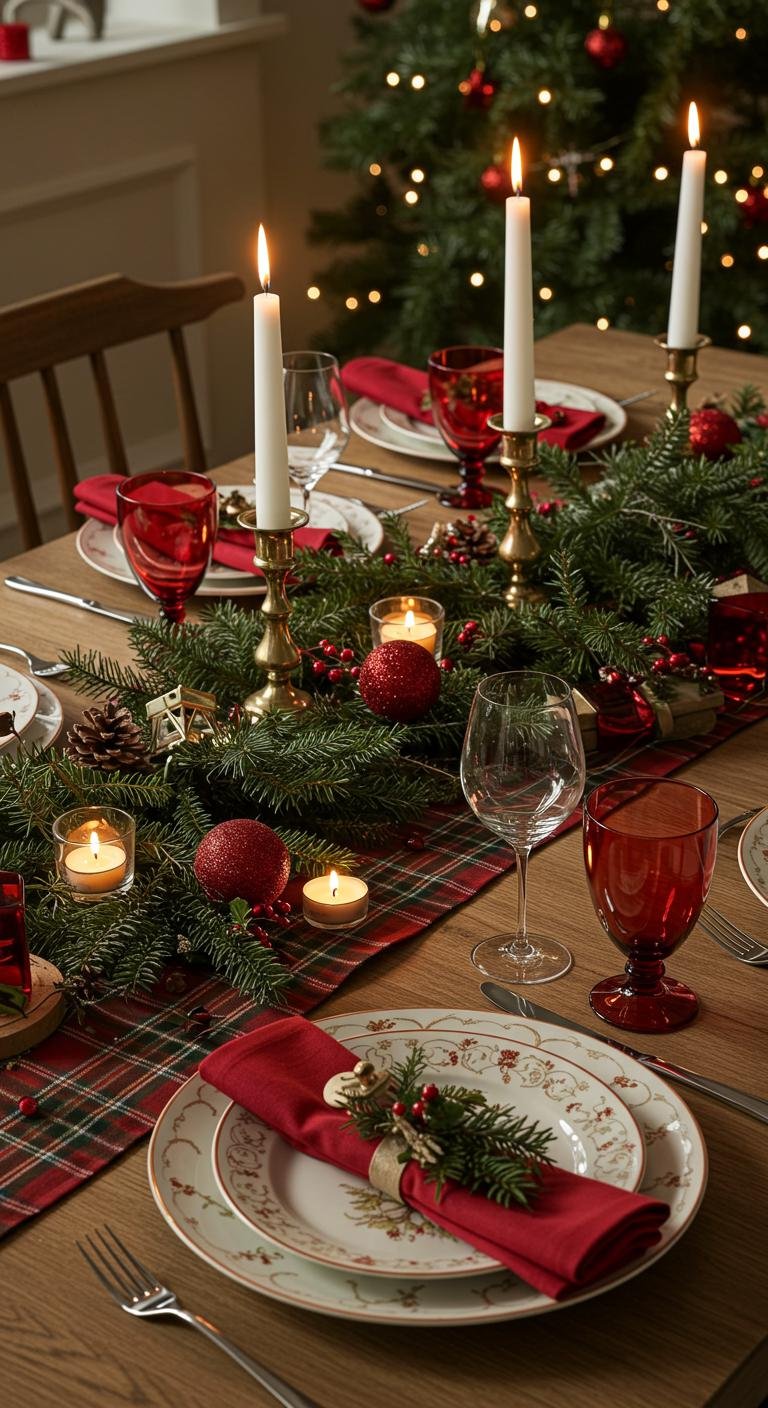 Nothing says cozy holiday like tartan patterns on your table. Swap in tartan runners or placemats paired with neutral dishes and sprinkle in some pine branches or small ornament clusters. Add a few candles to set that warm glow. This mix keeps things festive without feeling cluttered — just right for those family dinners we all look forward to.