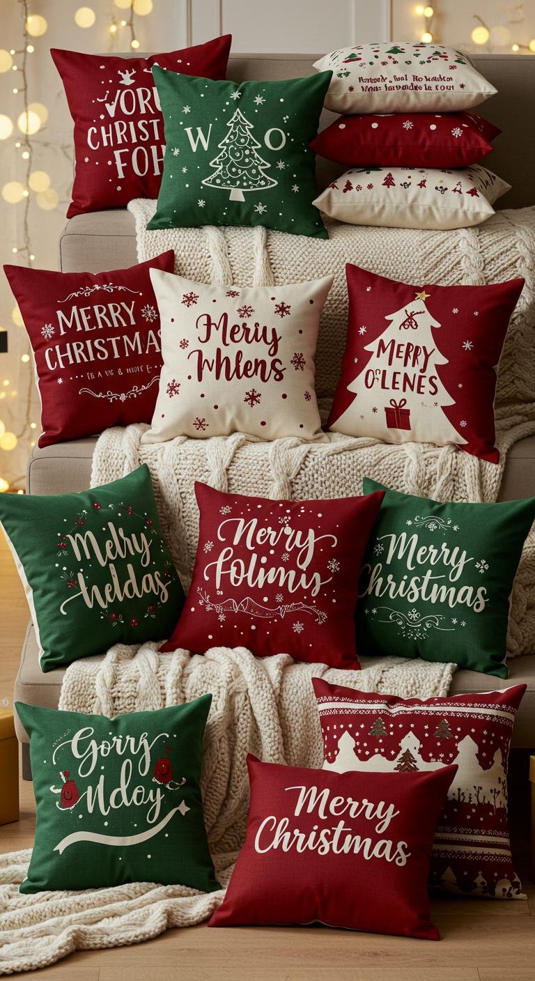 Throw pillows might sound basic, but trust me—they’re a game changer when it comes to cozy holiday vibes. Think rich velvets, soft faux fur, and deep red or green tones with fun patterns like snowflakes or pine branches. Mixing different sizes keeps things interesting. And if you’re watching your wallet, swapping out pillow covers is an easy hack—plus, a little DIY with fabric paint can make your pillows totally one-of-a-kind. Layer them up on your couch and boom, instant festive cuddle zone.