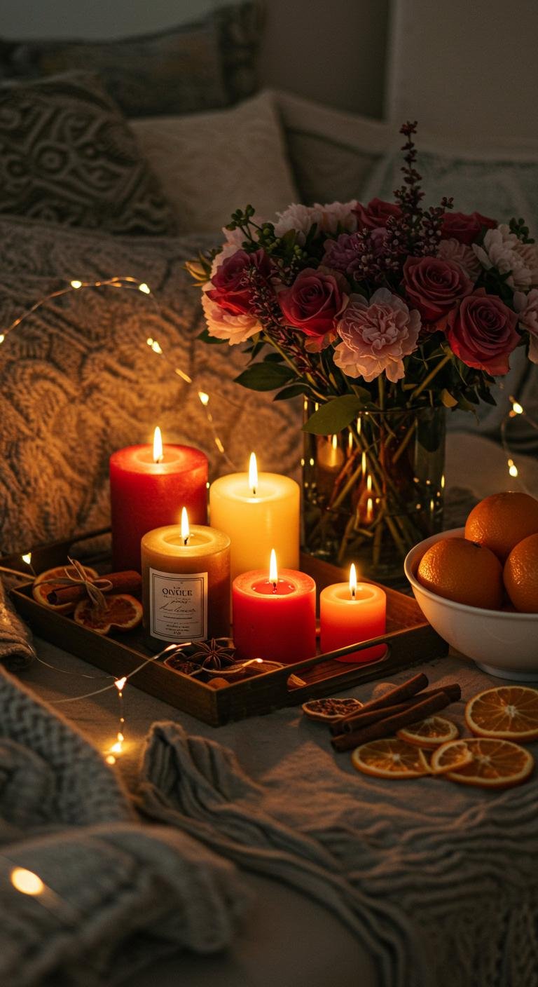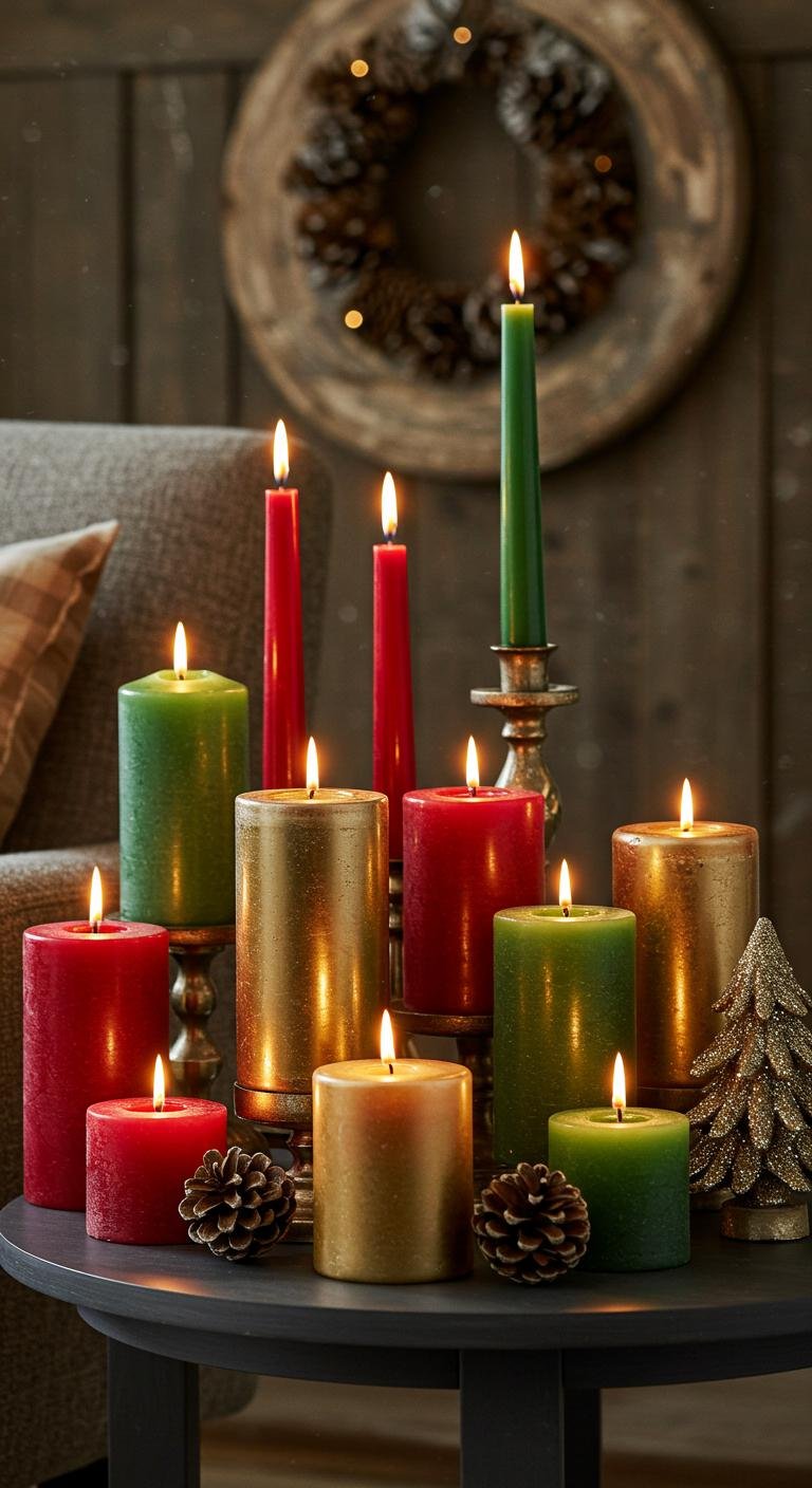 Candles in different shades and heights bring such a warm, layered glow to your space. Go for deep reds, sage greens, or shiny metallics to add a bit of glam without going overboard. Arrange them on trays or inside decorative bowls for an eye-catching centerpiece. If you want to save some cash, grab candles on sale or even make your own from leftover wax. Candlelight really lets the magic of the season seep into your room.