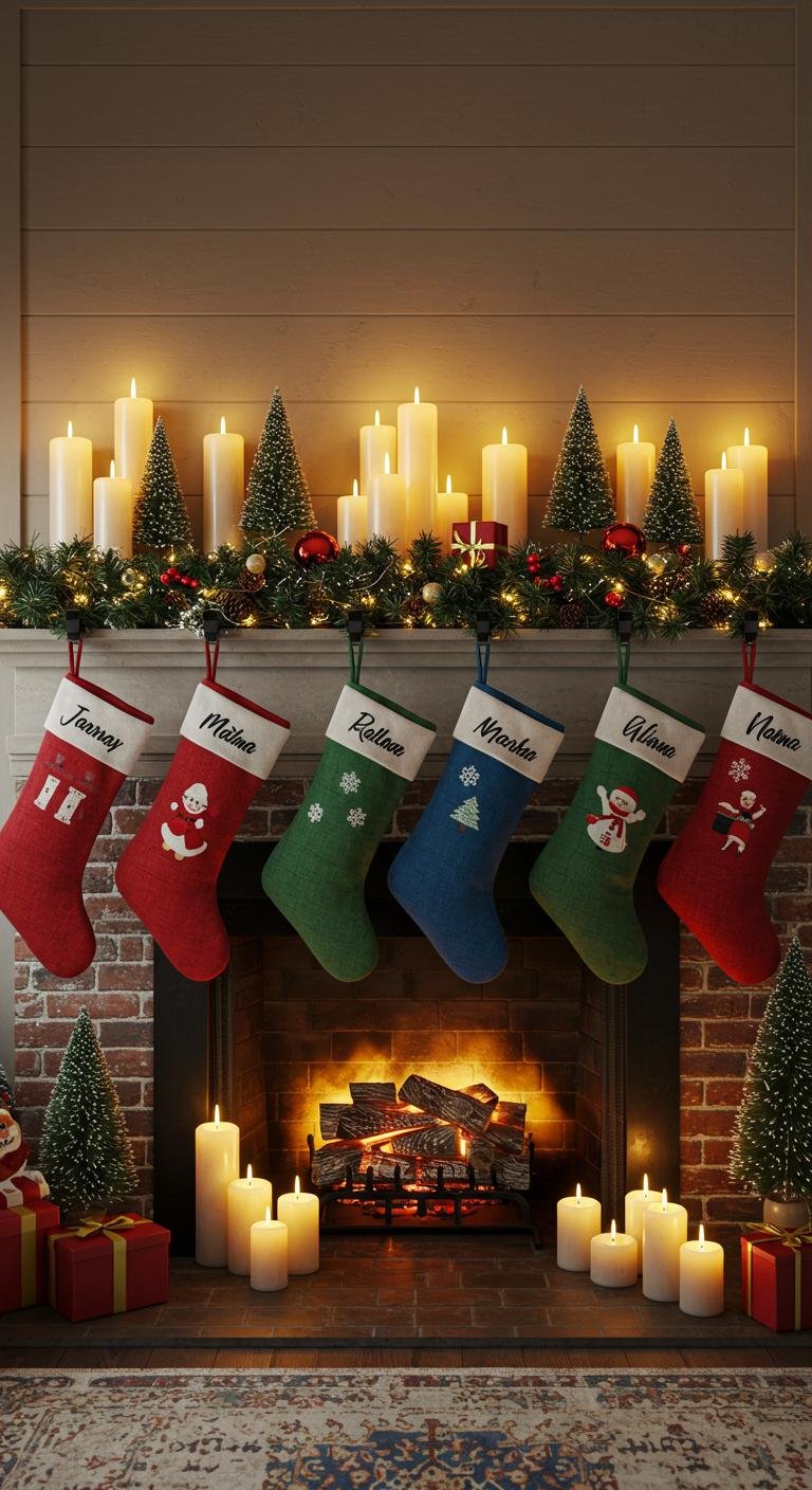 There’s no better spot than the fireplace mantel to show off your festive spirit. Start with a thick, lush garland as your foundation, then pile on candles, ornaments, and maybe those sentimental stockings that tell family stories. Keeping a color or theme consistent here pulls everything together beautifully. Feeling crafty? Make your own stockings with felt and fabric glue. Toss in some pinecones or berries for that rustic edge, and suddenly your mantel becomes a cozy focal point everyone admires.