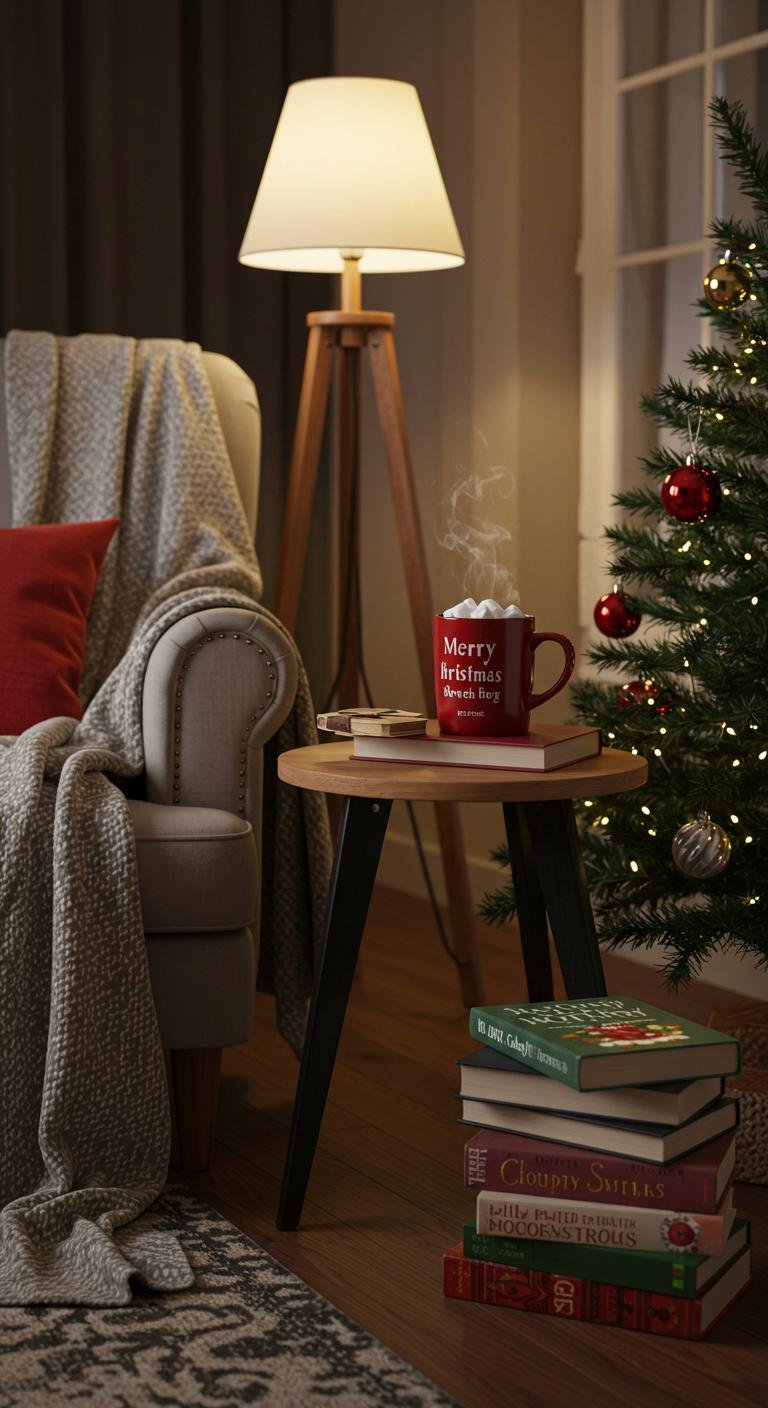 Winter evenings call for a snug little spot to curl up in, right? Carve out a corner with a comfy chair, a thick blanket, and a small table for your holiday reads and a hot drink. Soft lighting really ups the cozy factor—think lamps or even a string of fairy lights. You don’t need anything fancy here; sometimes just swapping cushions or pulling in existing furniture does the trick. It’s the perfect peaceful escape amid all the holiday hustle.