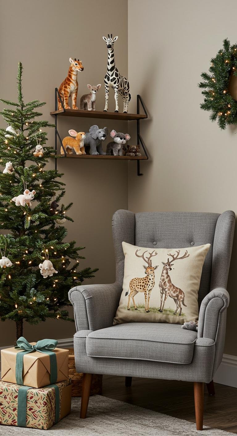 For a playful twist, sprinkle in some animal motif touches—think little deer figurines, owl pillows, or critter-themed ornaments. They’re cute and capture that joyful, whimsical spirit of the season perfectly. You can pick these up easily or get crafty with felt and fabric to personalize your decor. It’s the kind of detail that sparks smiles and adds a fun story to your holiday setup.
