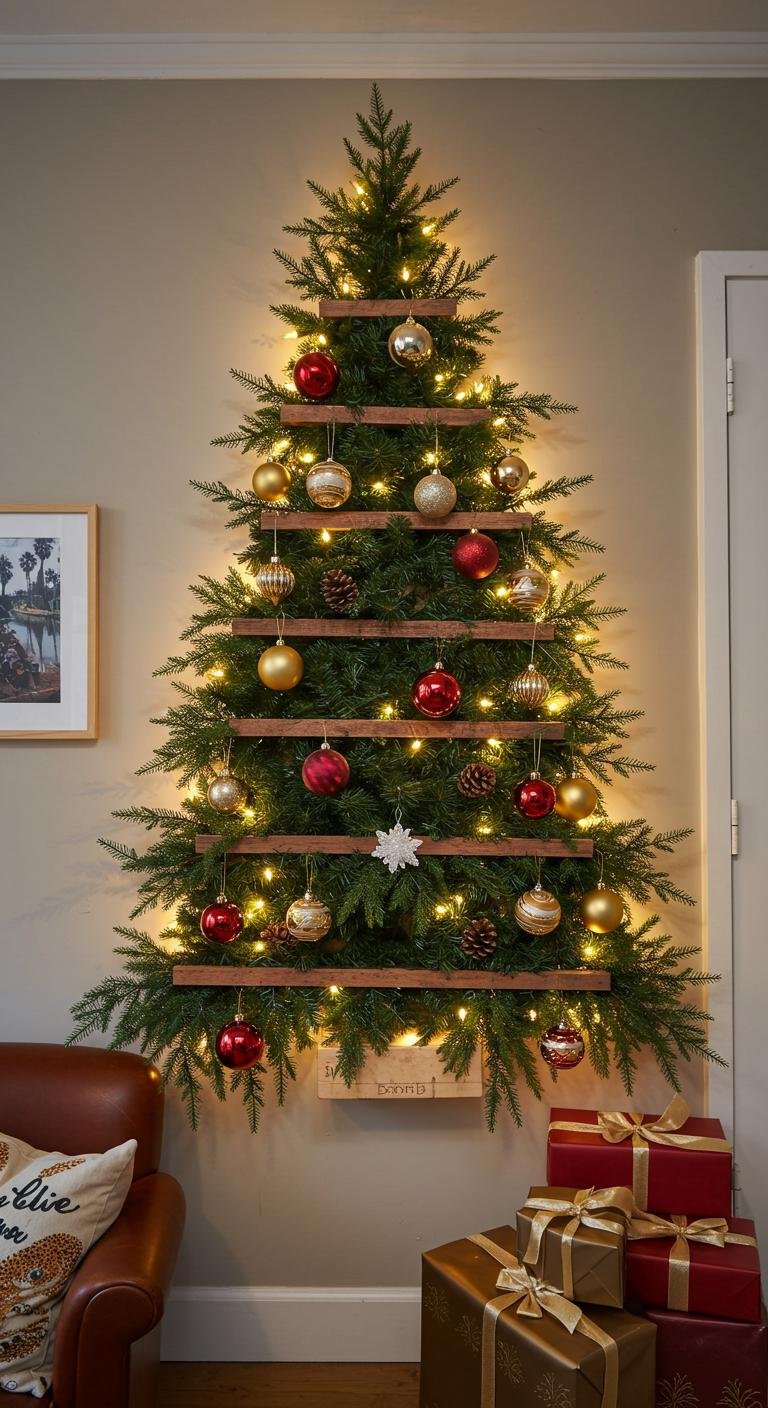 If floor space is tight, a wall-mounted tree might just be your new best friend. Customize your design with wooden frames or twinkly string lights for a fresh take on holiday decor. Bonus points for DIY fun: craft one with hooks and ribbons for a modern, artsy vibe that saves major space.