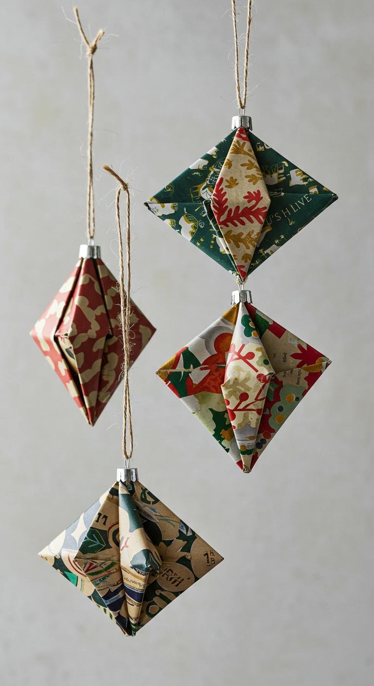 Origami stars bring a sweet handmade touch that’s both charming and a bit unexpected. Grab some colorful paper and fold away—different sizes make for a fun layered look on your tree or hanging around the house. It’s a great quiet activity for kids (and adults!) that’s relaxing and creative, plus it’s super budget-friendly.