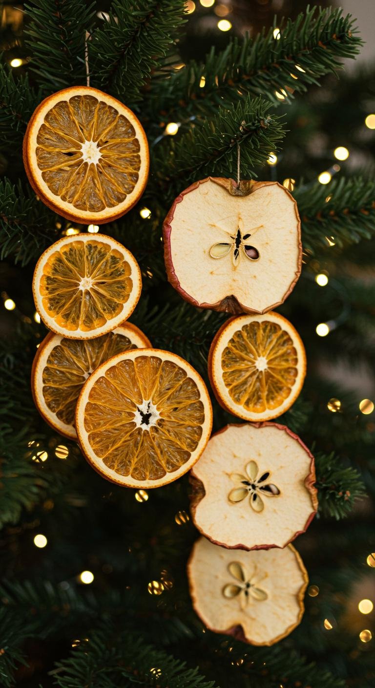 Dried fruit ornaments bring a lovely rustic and fragrant vibe to the holidays. Slice up oranges or apples and dry them out in the oven or a dehydrator until they’re just right. String them together with twine for that perfect old-fashioned look. For some extra scent and charm, add cinnamon sticks or star anise. These ornaments look amazing, smell divine, and are totally biodegradable — a win-win for your decor and the planet.
