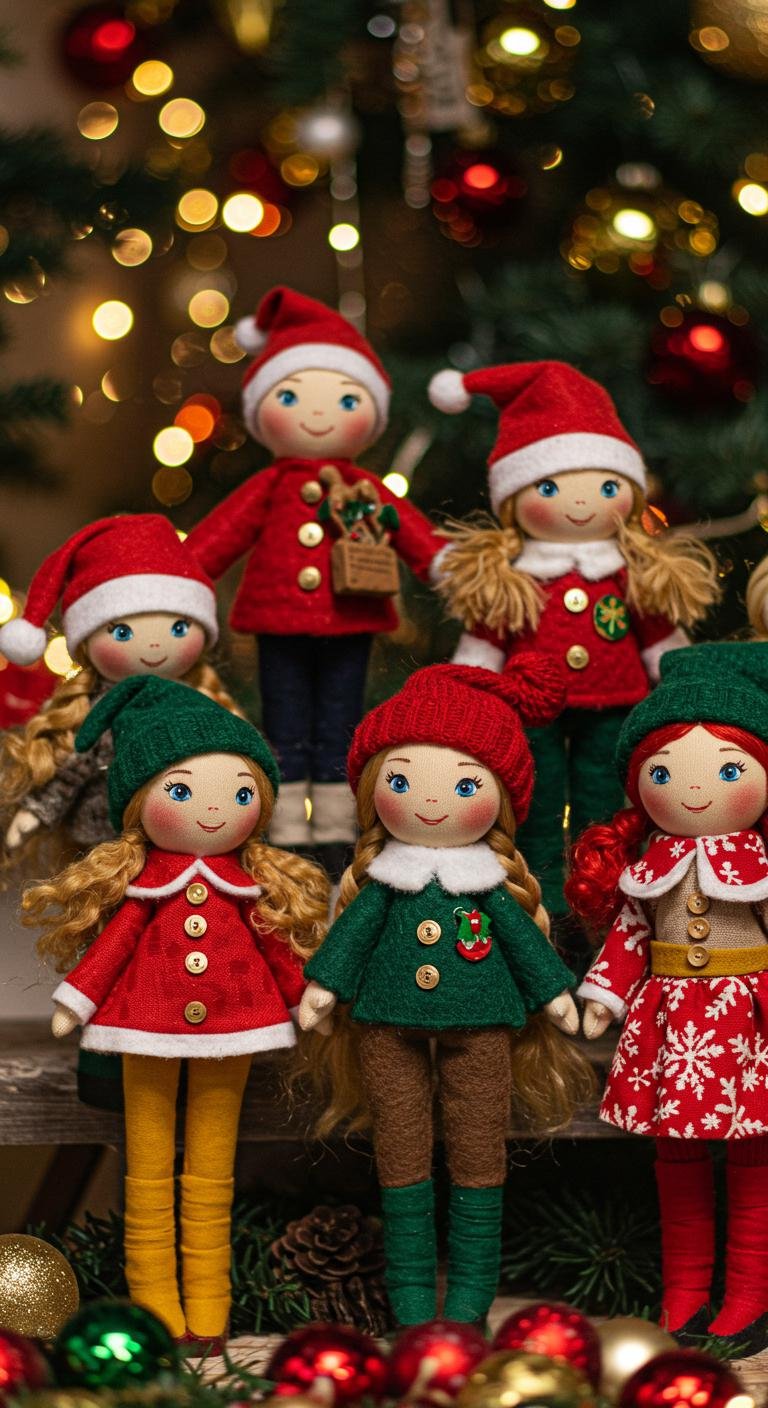 I’m totally obsessed with fabric dolls as ornament ideas because they add this adorable, personal touch to any tree. Grab some fabric scraps in holiday colors and cut them into simple shapes, then sew or glue together to make cute little figures. Dressing them up with tiny scarves, hats, buttons, or beads just amps up the charm. What’s even better? Using leftover fabric scraps makes it eco-friendly and budget-wise smart. Plus, these little dolls feel like a warm hug on your tree.