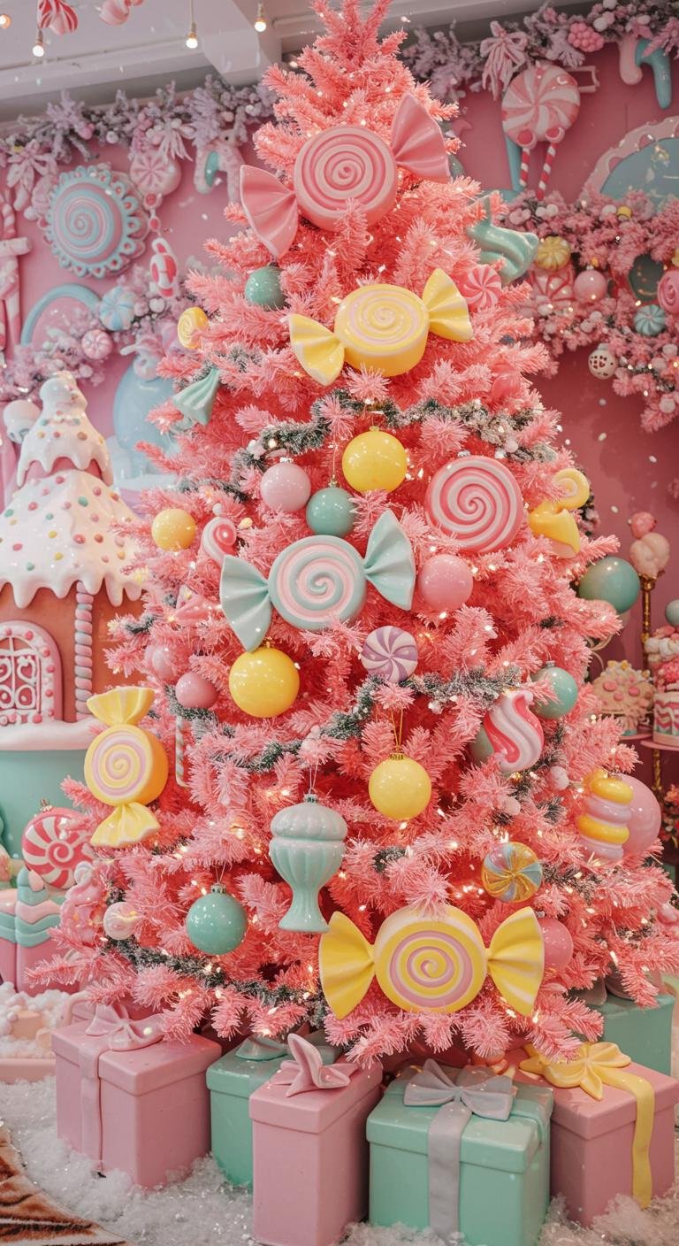 Imagine turning your pink tree into a sugary wonderland full of colorful candy canes and pastel delights. Hang oversized fake candies alongside bright pastel ornaments and garlands to really capture that sweet festive magic. The best part? You can DIY some cute foam candy shapes or grab faux candies on the cheap to keep your budget happy. Wrap a string of white lights around the whole thing and watch it glow with cozy, candy-coated warmth.