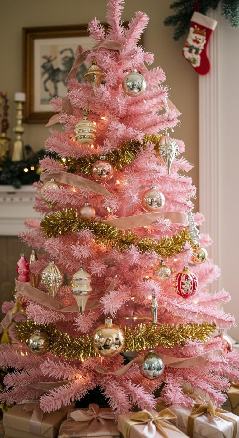 If bold and bright is your jam, layering different shades of pink with plenty of colorful ornaments and ribbons will give your tree tons of energy. Start stacking heavier baubles near the base and gradually go lighter as you reach the top. Big, playful bows crowning the tree add a fun finishing touch—bonus points for DIY ribbon bows that feel festive and budget-smart. This one’s all about bringing those happy vibes in full color.
