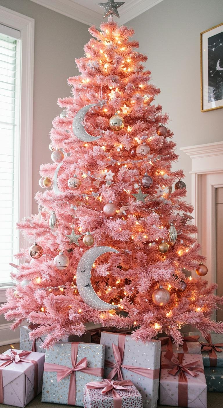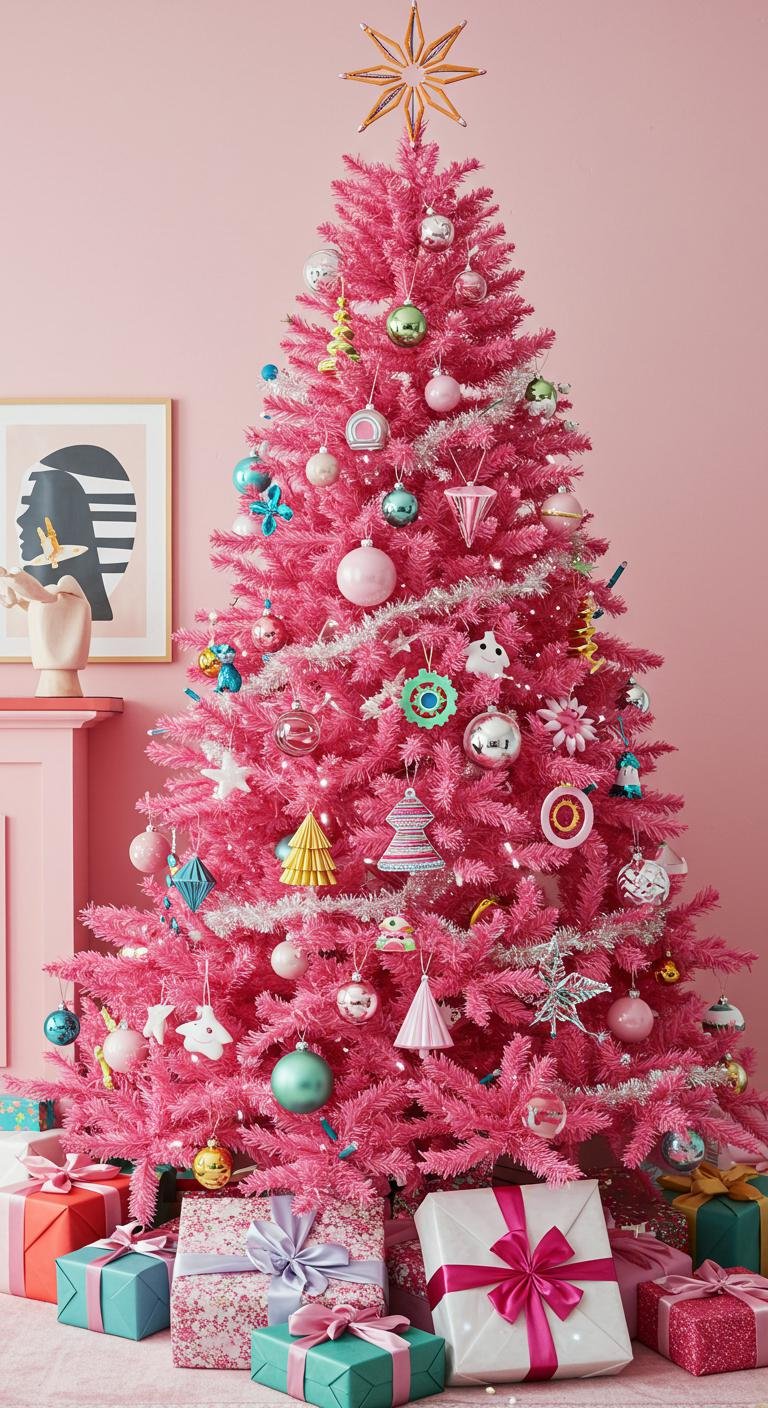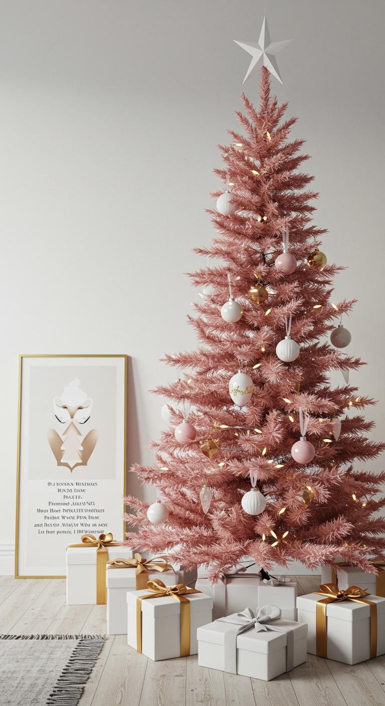 Sometimes simplicity speaks loudest. A minimalist pink tree with just a handful of dainty white or gold ornaments can make a sleek, stylish statement. Wrap soft ribbons delicately around the branches and maybe toss in some DIY paper stars for a personal yet understated vibe. It’s chic, calm, and all about that refined festive feel.