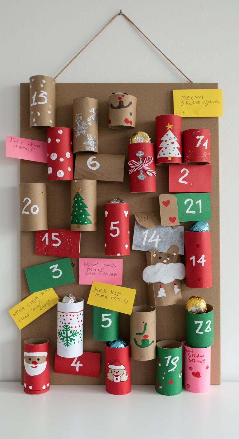 You’ll be amazed at how something as simple as recycled toilet paper rolls can transform into a charming Advent calendar that adds a touch of creativity to your holiday season. Grab some paint and scissors, decorate those rolls, and fill them with treats or sweet notes. Not only do you make fun holiday decorations, but you also release your inner DIY enthusiast with these quirky toilet paper crafts!