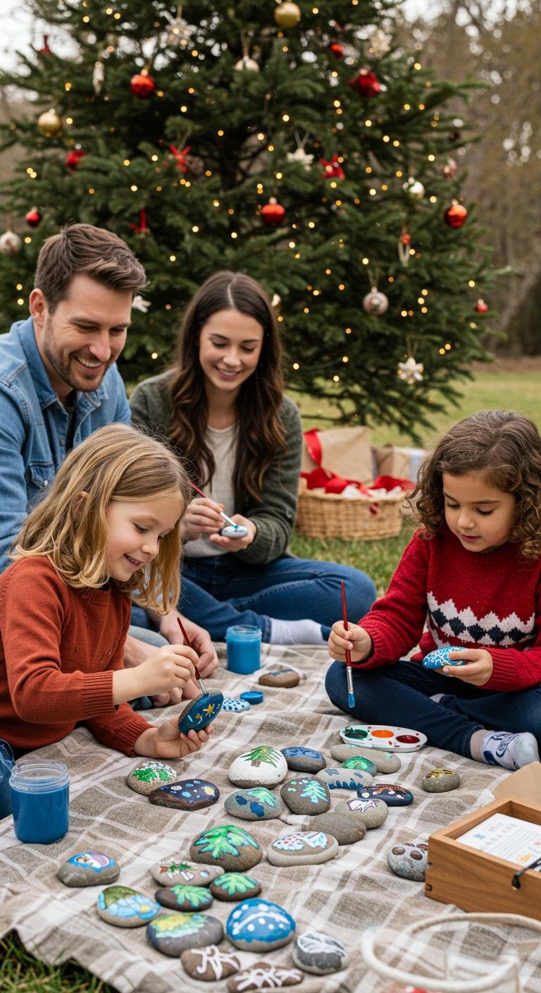 Creating a Painted Rock Countdown adds a charming twist to your holiday traditions! Imagine gathering your family outside, searching for smooth stones, and then releasing your creativity with rock painting ideas. You can paint nature-inspired designs like snowy trees or twinkling stars. Each day, kids reveal a new rock, turning the countdown into a fun outdoor adventure that sparks joy and imagination!