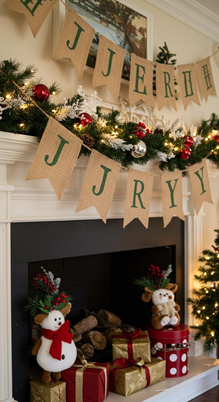 Transform your holiday decor with a charming Rustic Burlap Banner that adds a cozy touch to your festivities.