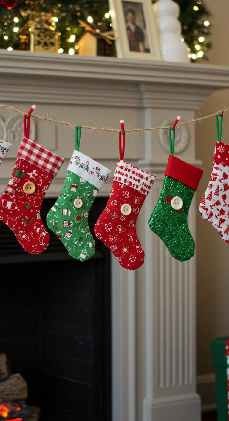 Create mini stocking designs using festive fabrics, and don’t hesitate to add some fun stocking embellishments like buttons or glitter.