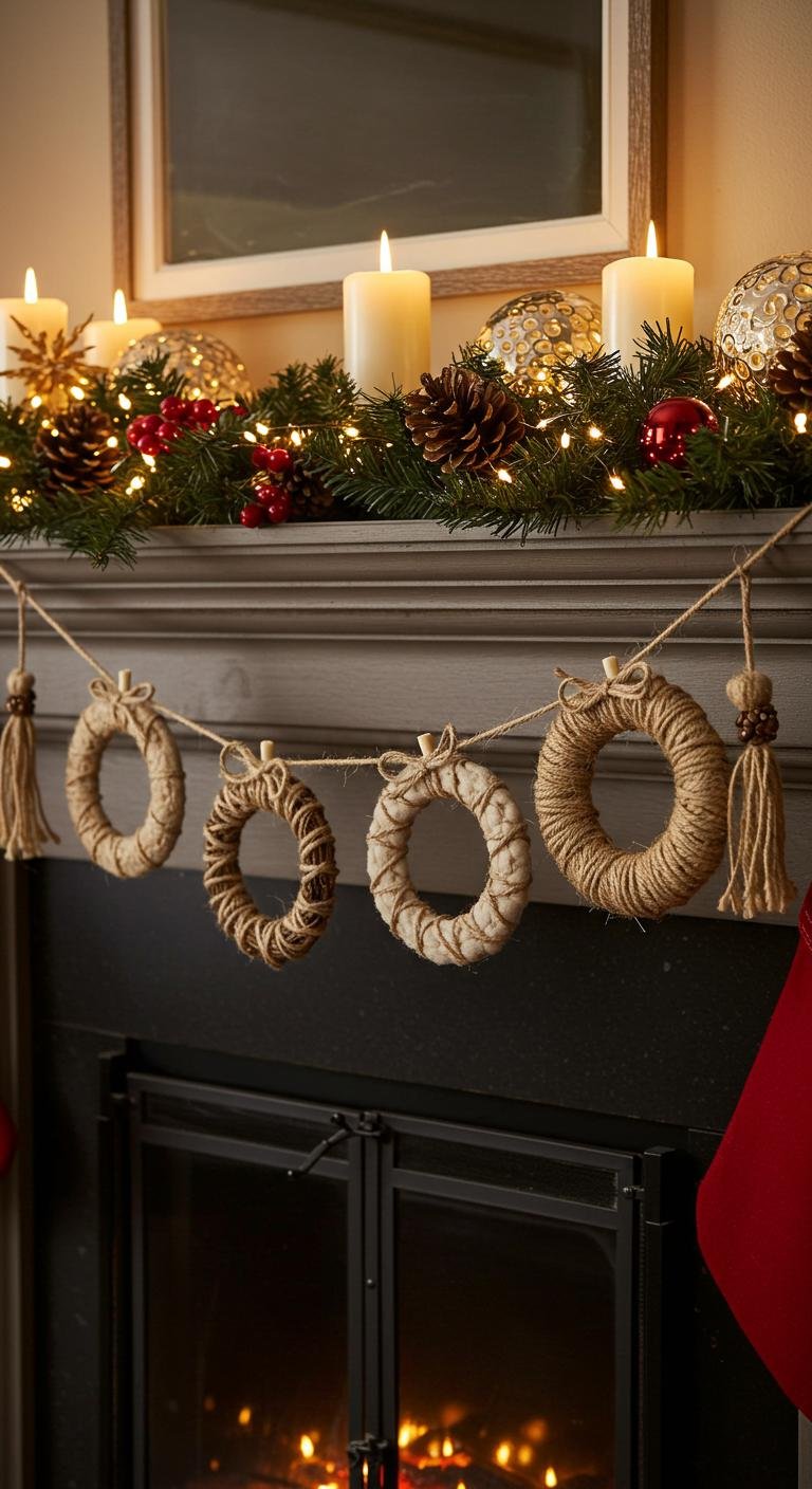 If you loved the mini stocking banner, you’ll find a wreath-inspired banner equally enchanting for your holiday setup. Use various wreath materials like twine, felt, or even pinecones to create charming decorations. Experiment with different wreath shapes to add personality. Hang your creation across the mantel or door, and let the festive spirit shine, bringing joy and cheer to your space!