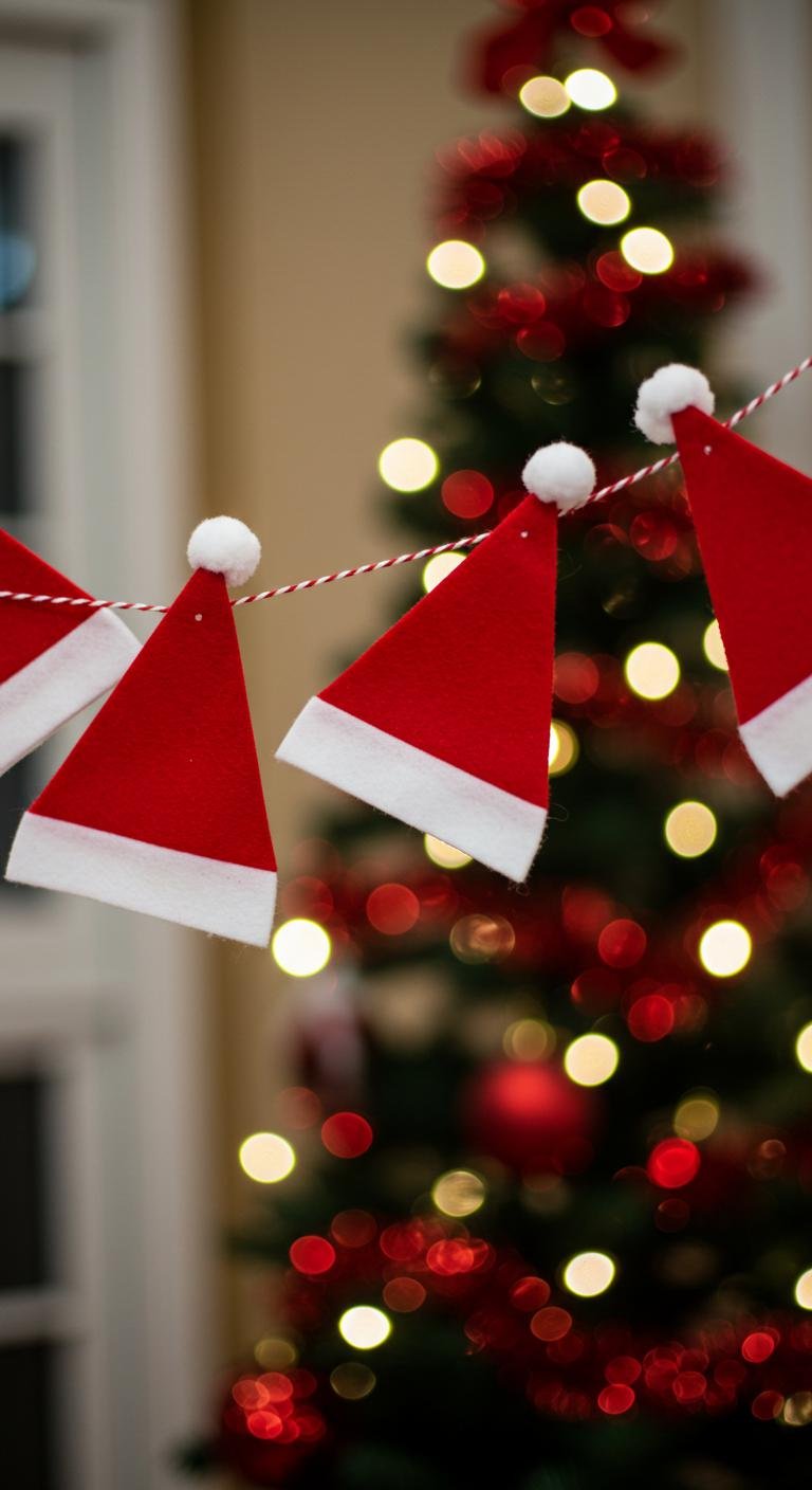 If you want to add a touch of festive fun to your holiday decor, a Santa hat banner is the perfect project for you! Grab your Santa hat materials—red felt, white pom-poms, and string. Choose vibrant Santa hat colors to match your decor. Cut out mini hats, glue them on, and hang the banner for a cheerful seasonal touch that everyone will love!
