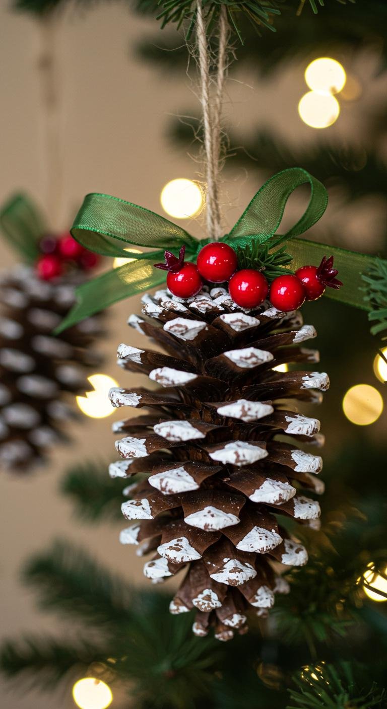 Pinecones are honestly such a no-brainer when it comes to natural ornament-making. Just grab a handful from your yard or a nearby park, add a splash of white paint to mimic a fresh snowfall, and tie on some ribbon or twine for hanging. Want to get playful? Sprinkle some glitter, glue on buttons, or even stick on googly eyes to create quirky little characters. And honestly, if you turn this into a decorating sesh with the kids, you’re in for some budget-friendly laughs and memories that outshine any store-bought ornament.