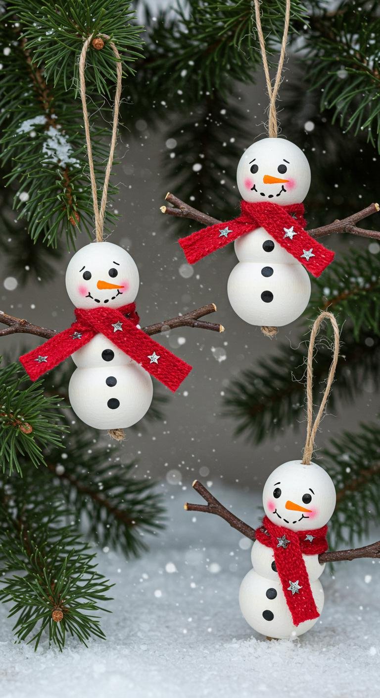 Turn simple wooden beads into the cutest snowmen you’ve ever seen. Paint three beads white, stack them up, then add little twig arms and tiny buttons for that classic snowman look. Got some fabric scraps? A quick scarf made from those adds so much personality. This is a perfect craft to do with kids since they get to paint and customize their own frosty friends. Plus, these snowmen are sturdier and easy to stash away for next Christmas!