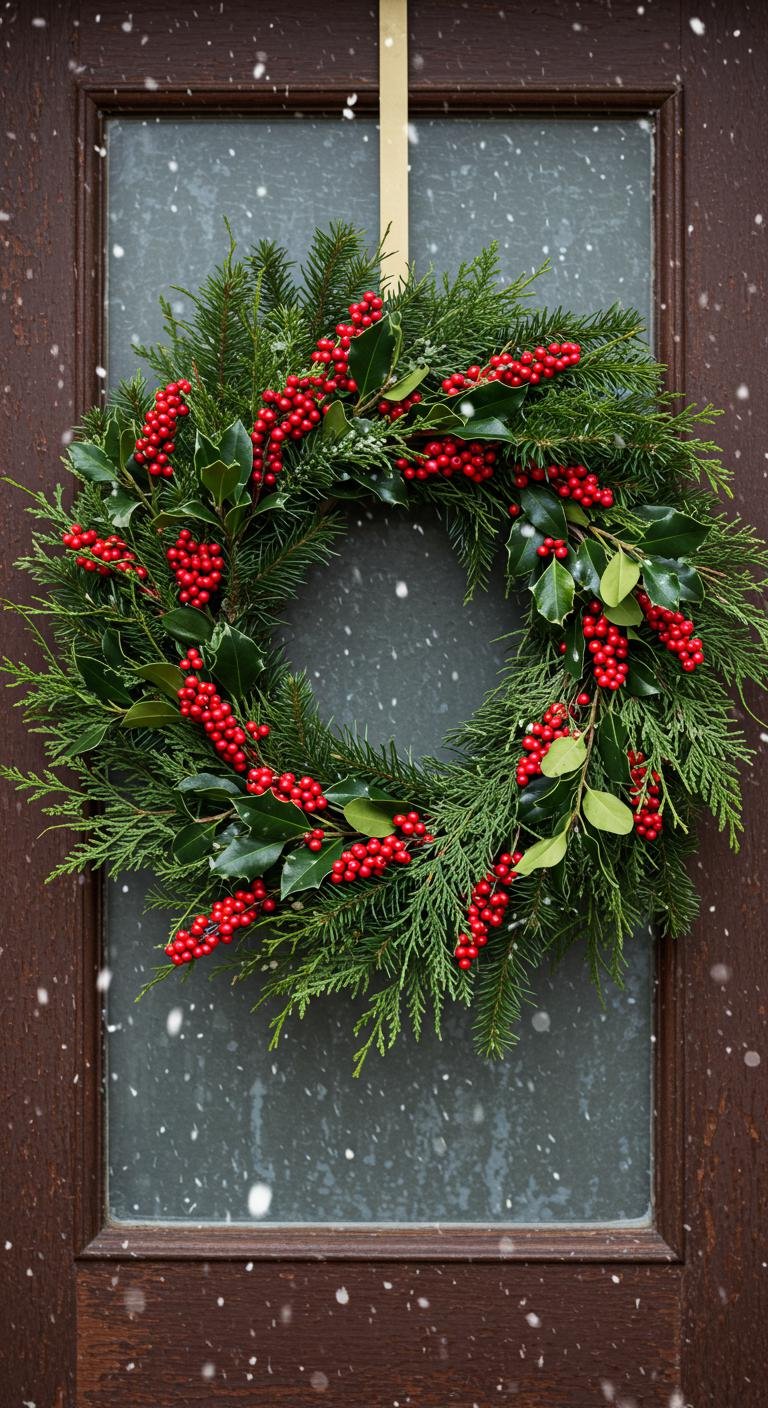 There’s seriously nothing like the scent of fresh evergreens during the holidays. Gather spruce, pine, cedar — whatever’s available — and form a simple circular wreath tied together with floral wire or twine. To make it pop, sprinkle in some holly or berries for that classic color punch. Hang it inside or out, and enjoy the fresh forest vibes. This one’s a great family project where everyone can bring in their favorite bits from nature. So satisfying!