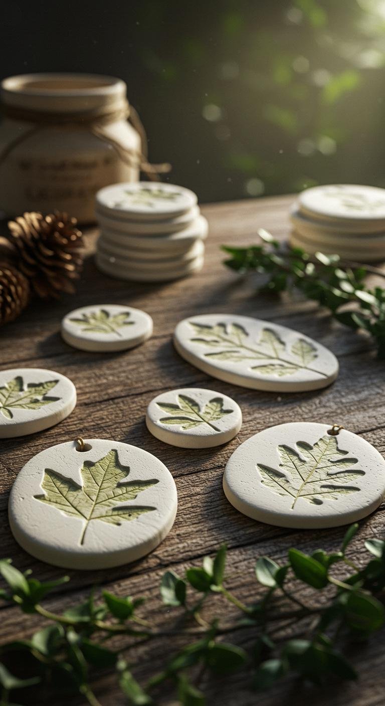 Using air-dry clay, you can make these beautiful ornaments by pressing leaves right into the clay for that detailed, nature-inspired texture. Cut out your shapes, poke a hole for hanging, and after they dry, either leave them natural for that rustic look or add some paint. What’s cool is you can personalize these with names or special dates — instant keepsakes! It’s a lovely way to spend quality time with family and make something truly meaningful.