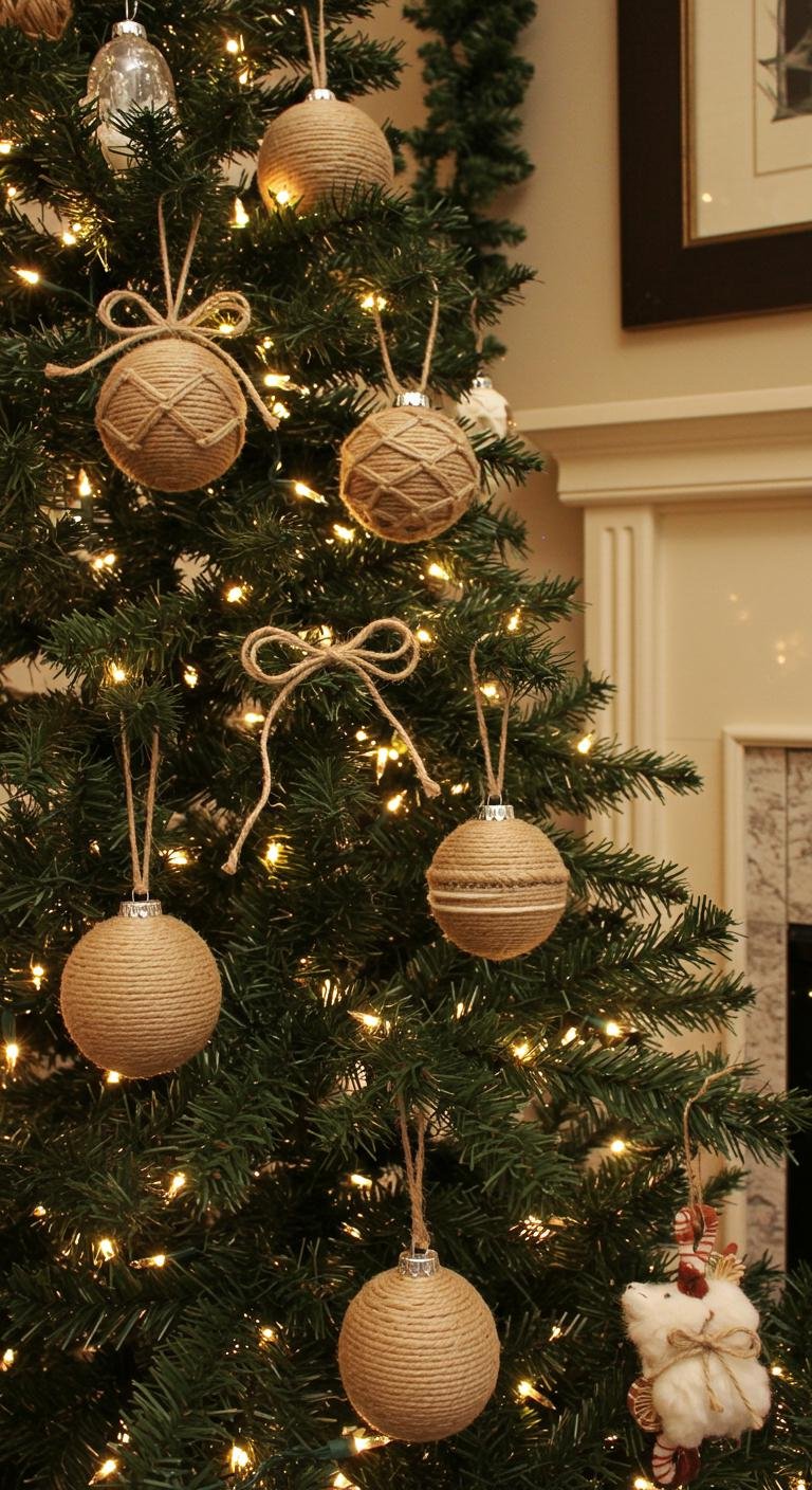 Transform your holiday decor with charming rustic twine-wrapped ornaments that bring a cozy, natural vibe to your tree.