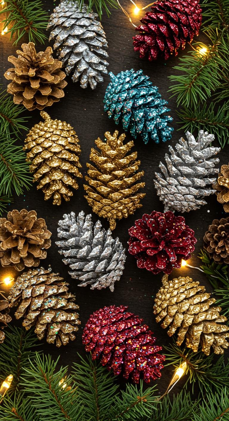 Explore different pinecone varieties, and let your creativity shine with various glitter techniques.