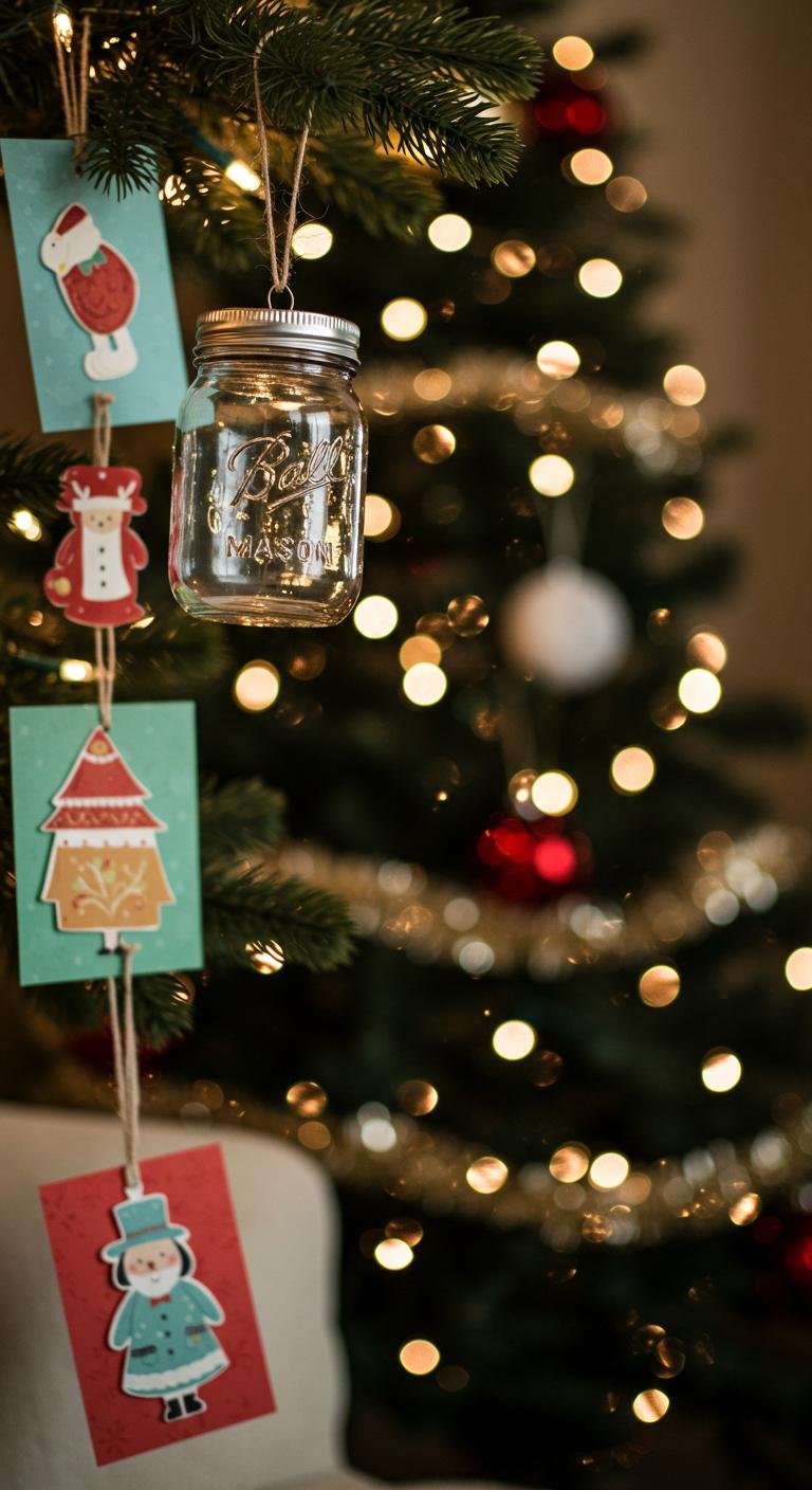 Mason jar ornaments bring a rustic charm to your holiday decor, turning simple glass containers into delightful decorations.
