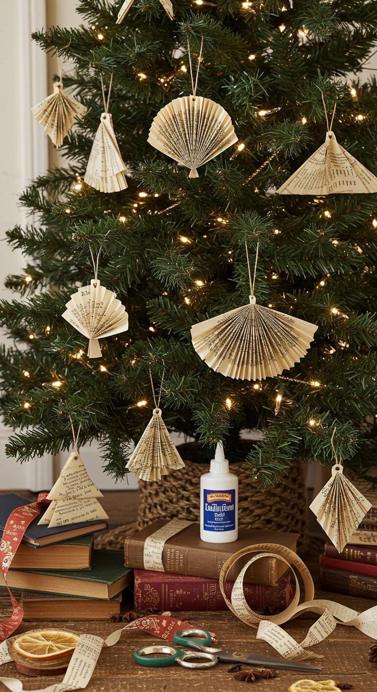 Vintage book page ornaments bring a touch of literary charm to your holiday celebrations.