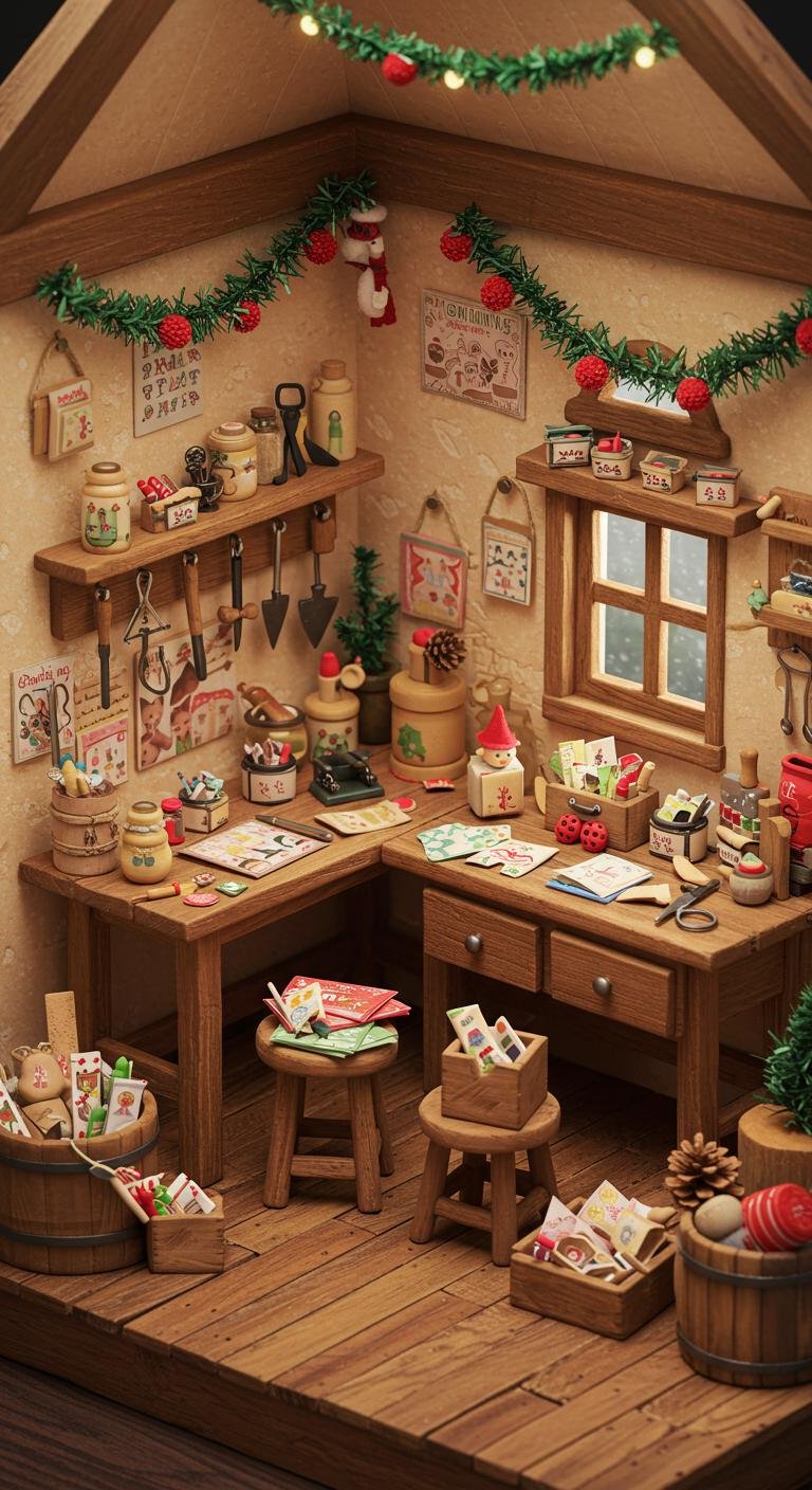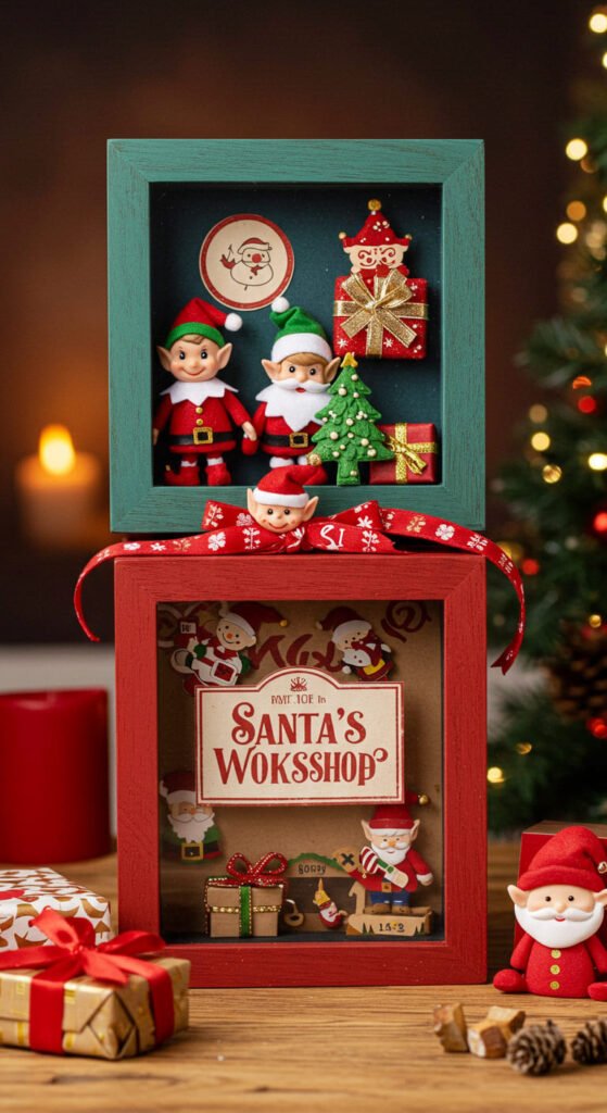 Bring the magic of the North Pole right into your home with a whimsical elf workshop shadow box. You can create enchanting scenes filled with charming elf crafts, tiny tools, and colorful workshop decorations. Use vibrant papers and miniature supplies to make each detail pop, inviting joy and inspiration. This festive project not only beautifies your space but also sparks creativity for everyone who visits!