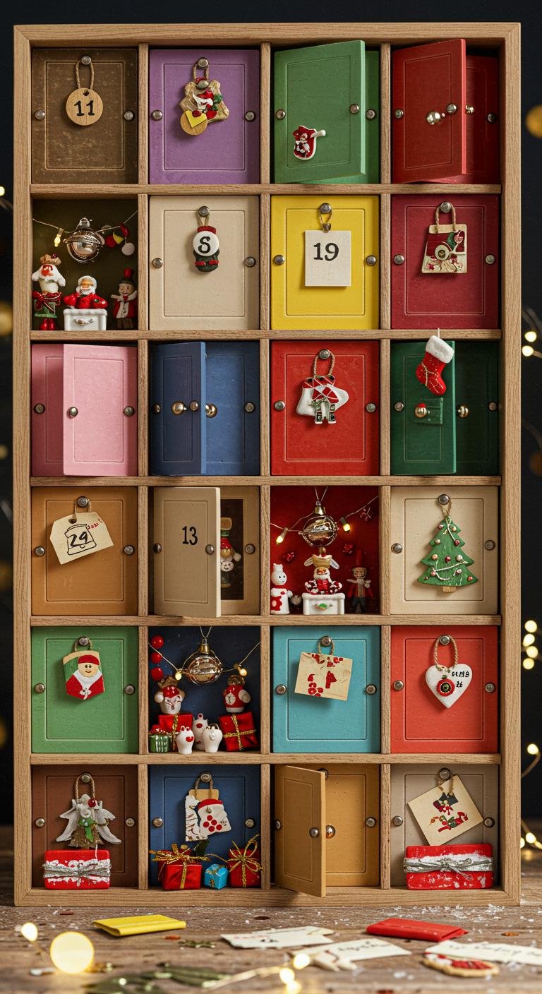 This creative countdown can feature little surprises or festive imagery behind each door. Think outside the box with your advent calendar ideas, using colorful paper, mini ornaments, or heartfelt notes to engage all ages in your holiday cheer!