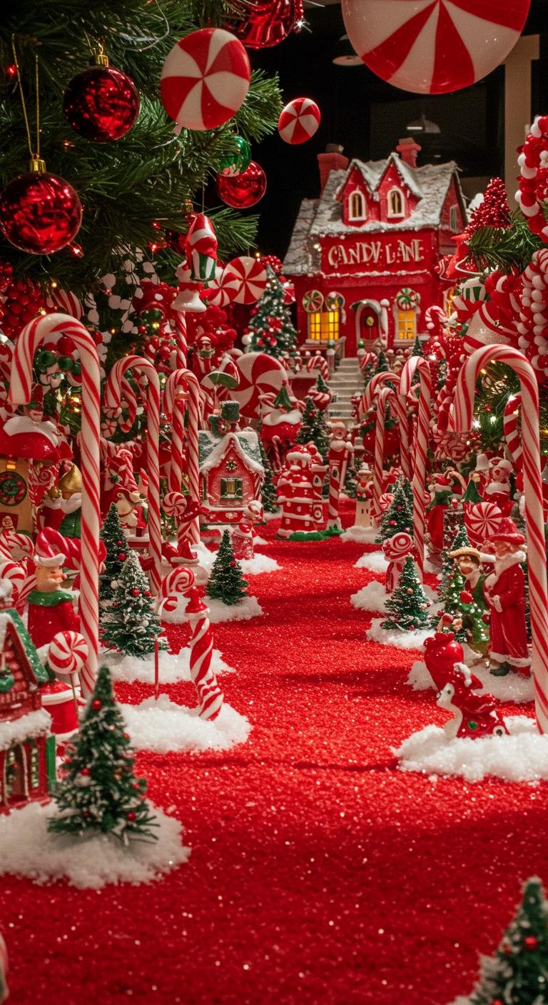 Use vibrant candy cane decorations to create a playful yet cozy atmosphere. Mix reds, greens, and whites for a festive color scheme.