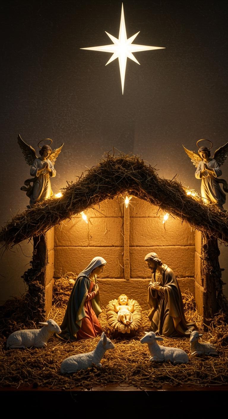 Don’t forget to add a radiant Christmas star above, symbolizing hope and joy.