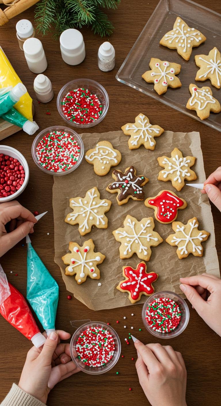Use vibrant snowflake icing to create intricate designs on each cookie, letting your creativity flow. Finish off with a sprinkle of festive sprinkles to add that magical touch.