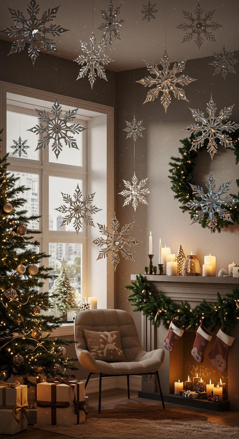 Transform your holiday decor with dazzling metallic foil snowflakes that catch the light and elevate your festive spirit.