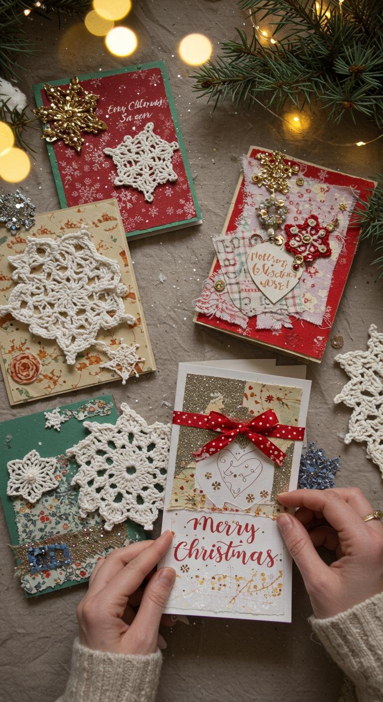 While crafting beautiful crochet snowflakes can be a delightful project, sending out handmade snowflake holiday cards adds a personal touch that everyone will appreciate. You can easily create unique snowflake designs using paper, glitter, or even fabric scraps. Personalize your cards with heartfelt holiday greetings, spreading joy and warmth. Imagine the smiles on loved ones’ faces when they receive your thoughtful creations this season!