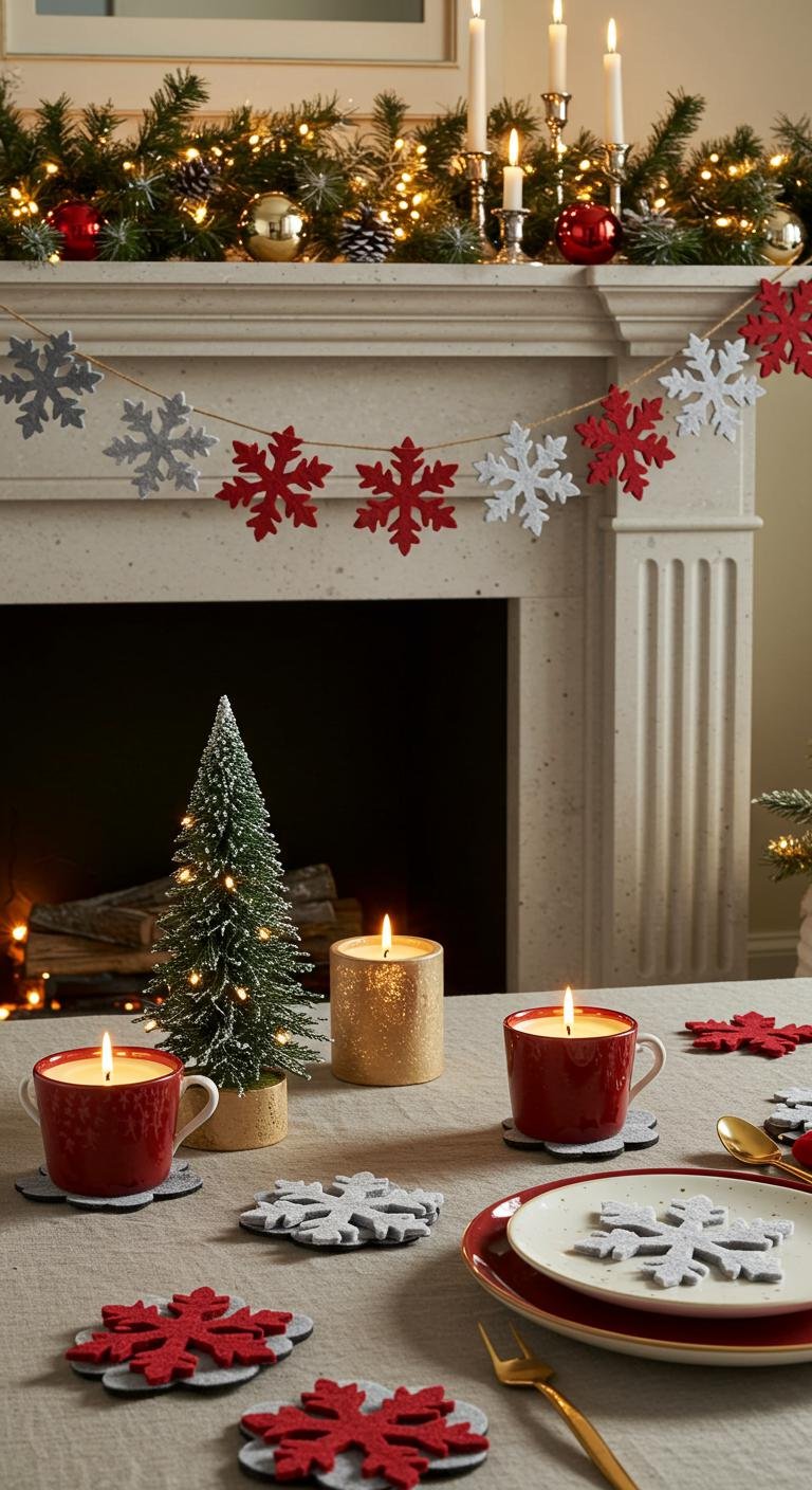 While winter brings its own magic, adding felt snowflake decorations can elevate your holiday decor to new heights. Create charming felt snowflake garlands to drape across your mantel, enchanting guests with their cozy vibe. Don’t forget stylish felt snowflake coasters for your festive gatherings—they’ll protect your surfaces while adding wintery flair. Let your imagination soar and watch your space transform!