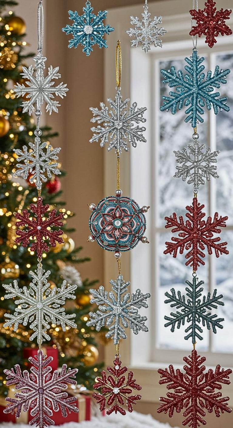Enhance each ornament with unique snowflake embellishments like beads or gems.