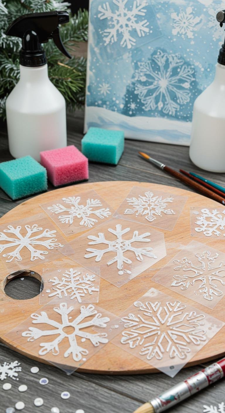 After you’ve enjoyed crafting those charming pinecone snowflakes, why not elevate your holiday decor further with snowflake stencils for painting?