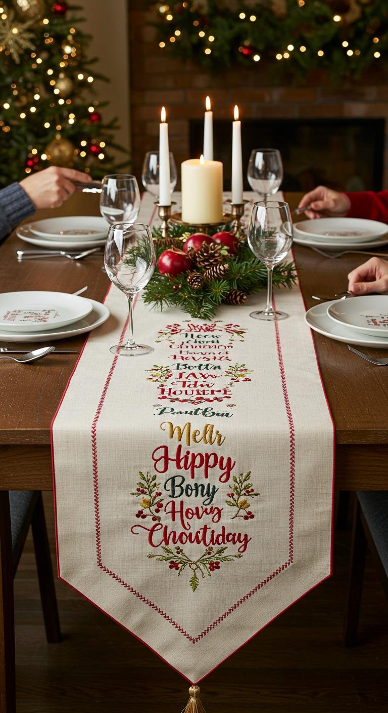 As you set the scene for your festive gatherings, an Embroidered Holiday Message Runner can add a heartfelt touch to your table decor.