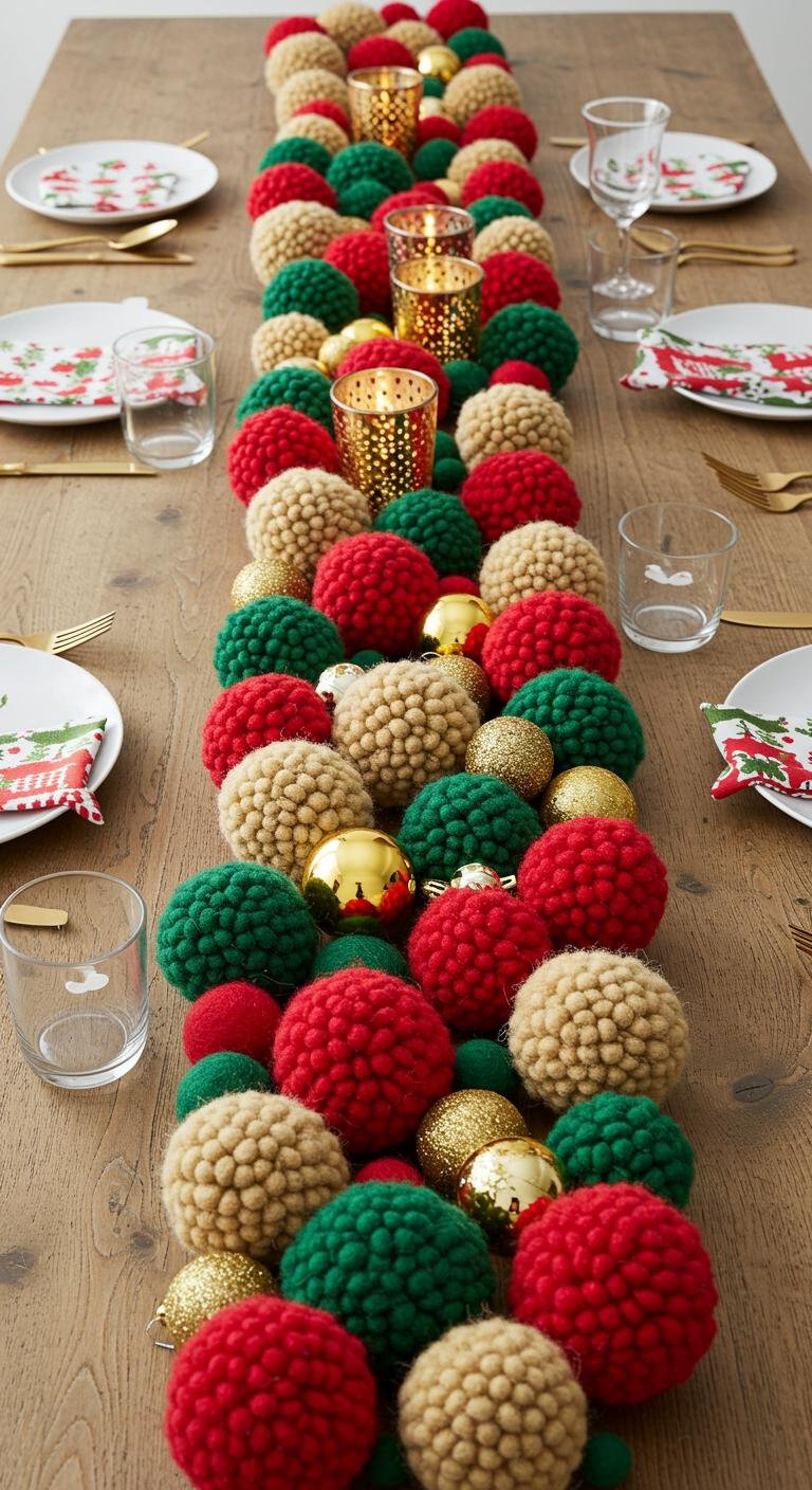 Using simple pom pom crafting techniques, you can add texture and whimsy, effortlessly elevating your dining room for a joyful holiday gathering.