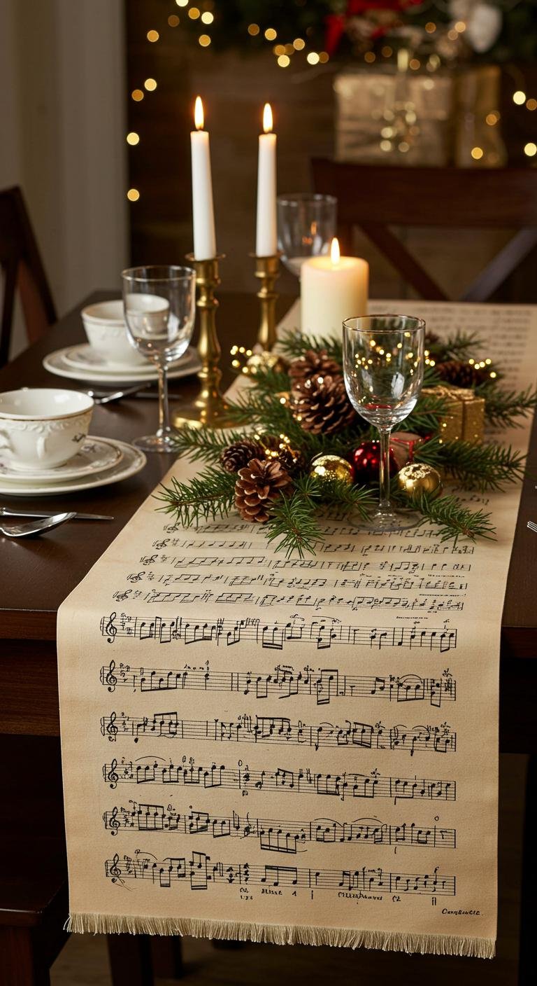 Transform your holiday table into a nostalgic haven with a vintage sheet music Christmas runner that celebrates the spirit of the season.