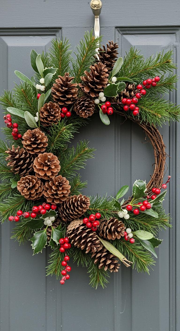 There’s something inherently charming about a Pinecone and Berry Wreath that instantly brings the warmth of the holidays into your home.