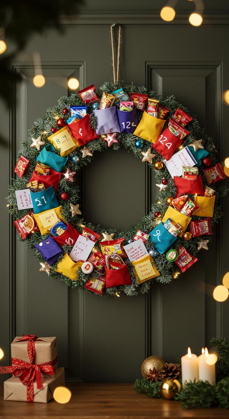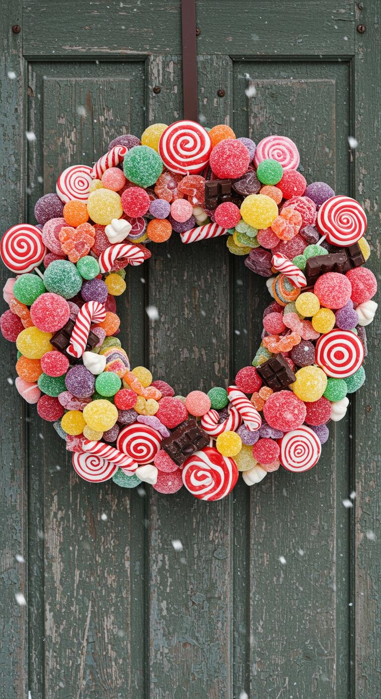 As winter’s chill begins to settle in, the festive spirit calls for something sweet and delightful to hang on your door. Imagine a candy wreath bursting with colorful treats, inviting friends and family with a tantalizing dessert wreath vibe. You can easily glue your favorite candies onto a foam base, creating a cheerful display that captures the holiday mood and sparks joy in everyone who visits!