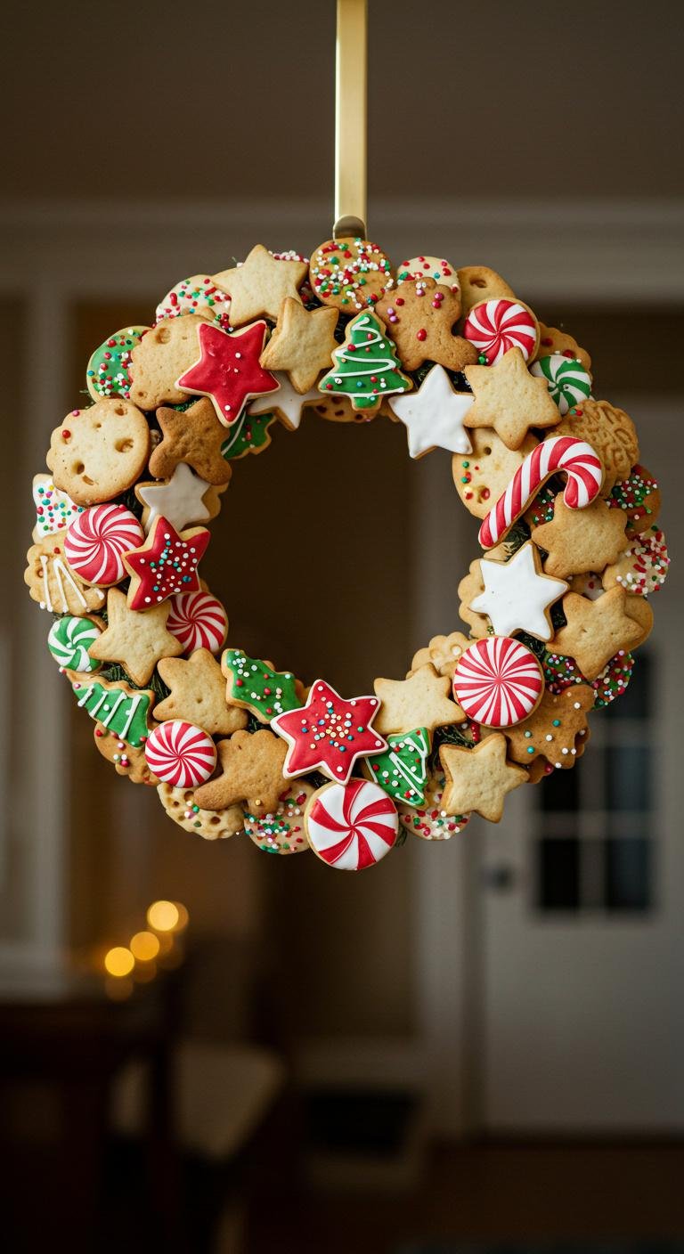Transform your front door with a delightful cookie cutter wreath that’s sure to spark holiday cheer.