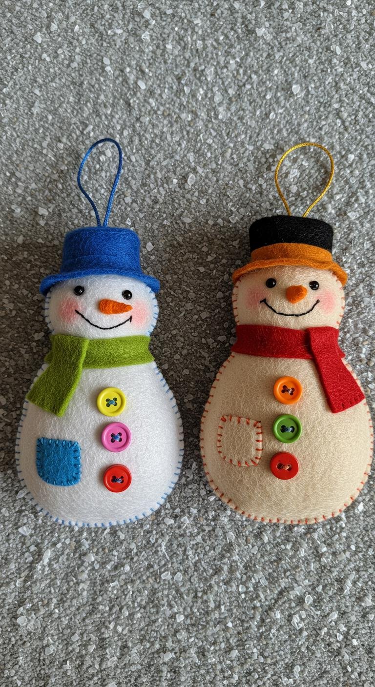 Making felt snowmen is such a fun and straightforward craft. Just pick out a few felt colors — white for the body, any color for scarves and hats. Cut out two circles for the body (a big one and a smaller one) and a tiny hat shape. Glue the pieces together, then jazz up your snowmen with button eyes and a little carrot nose made of felt. They’re adorable on trees or make sweet little gifts, and you can totally customize their look to fit your style or mood.