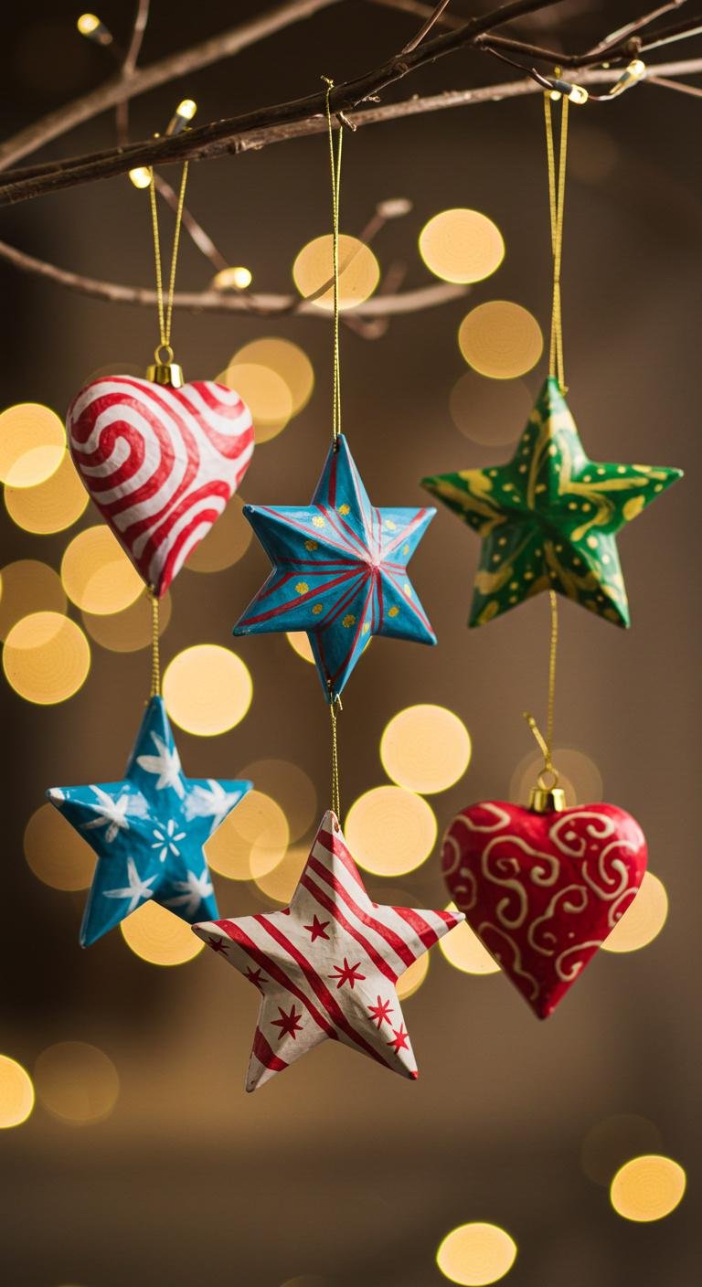 If you want an easy, classic kick-off project, making clay stars is a total win. Grab some oven-bake clay in your favorite colors, roll it out nice and thin, then use star cookie cutters to make your shapes — don’t forget to poke a hole at the top before baking so you can hang them up! After baking and cooling, the fun really begins: paint them, add glitter, whatever feels right. These stars aren’t just for your tree; they double as cute gift toppers and only need clay, a cutter, and paint to look amazing.