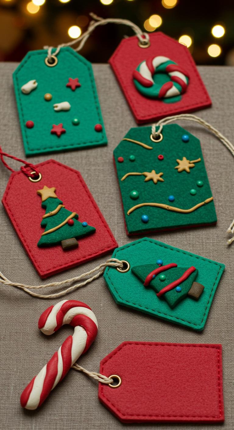 Why settle for boring store-bought gift tags when you can make your own with clay and felt? Roll out some clay and cut tags with a cutter, bake them, then paint or stamp fun designs. Or if you’re feeling more into felt, cut simple shapes and attach them to cardstock — add your special messages right there. These handmade tags add a personal vibe to your gifts and are a fun way to get kids involved, letting their creativity shine!