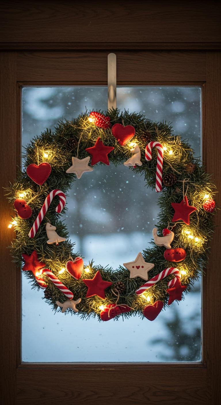 Here’s a way to make your front door pop this holiday season: an ornament-wrapped wreath! Grab a foam wreath base and hot glue your handmade felt and clay ornaments all around it. Play with the arrangement so it looks artsy and full of life, then add some ribbons or twine to finish it off. It’s a cool, budget-friendly décor piece, plus it’s even more special when everyone in the family chips in with their favorite ornaments.